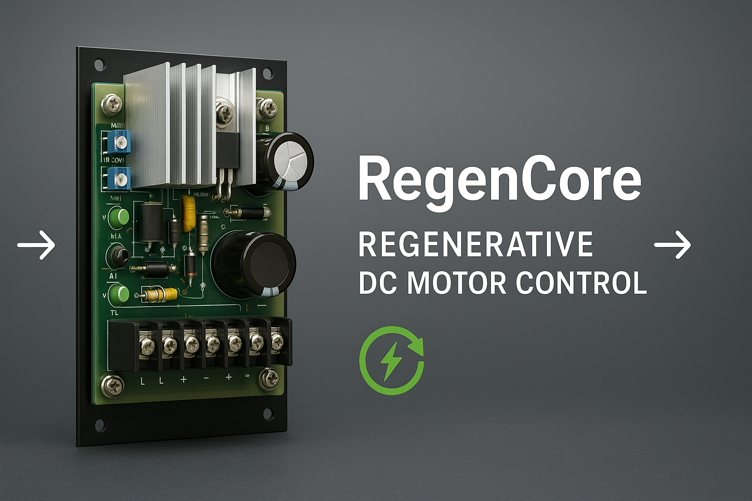 RegenCore is a high-performance 4-quadrant regenerative DC motor drive engineered for industrial applications that demand precision, efficiency, and durability. Designed to recover and return excess energy during braking, RegenCore minimizes energy loss and maximizes operational performance. Built with SCR technology and a rugged chassis enclosure, it delivers smooth speed control, regenerative braking, and bi-directional motor operation for conveyor systems, packaging lines, test benches, and more. With support for remote analog signals, tach feedback, and a range of input voltages, RegenCore is your ultimate solution for regenerative DC motor control.